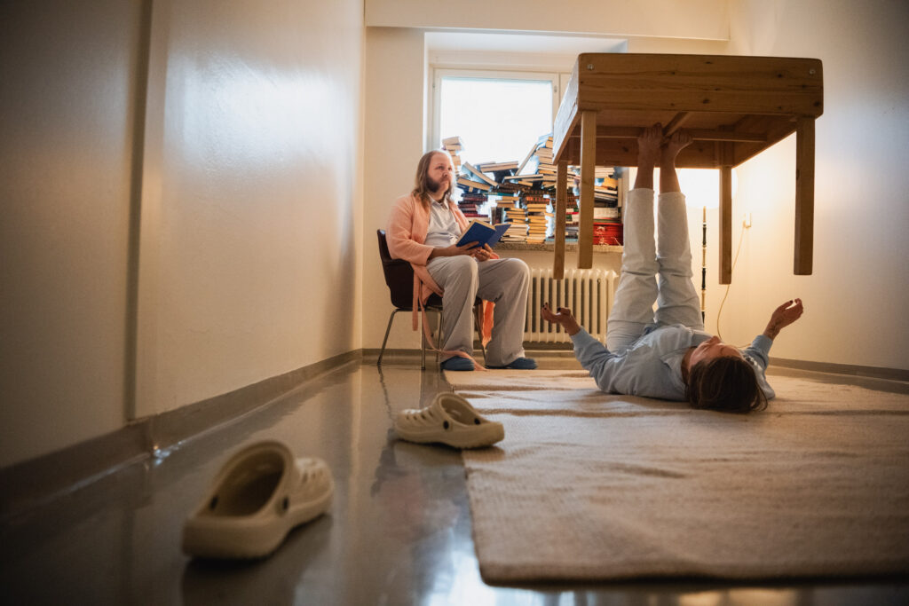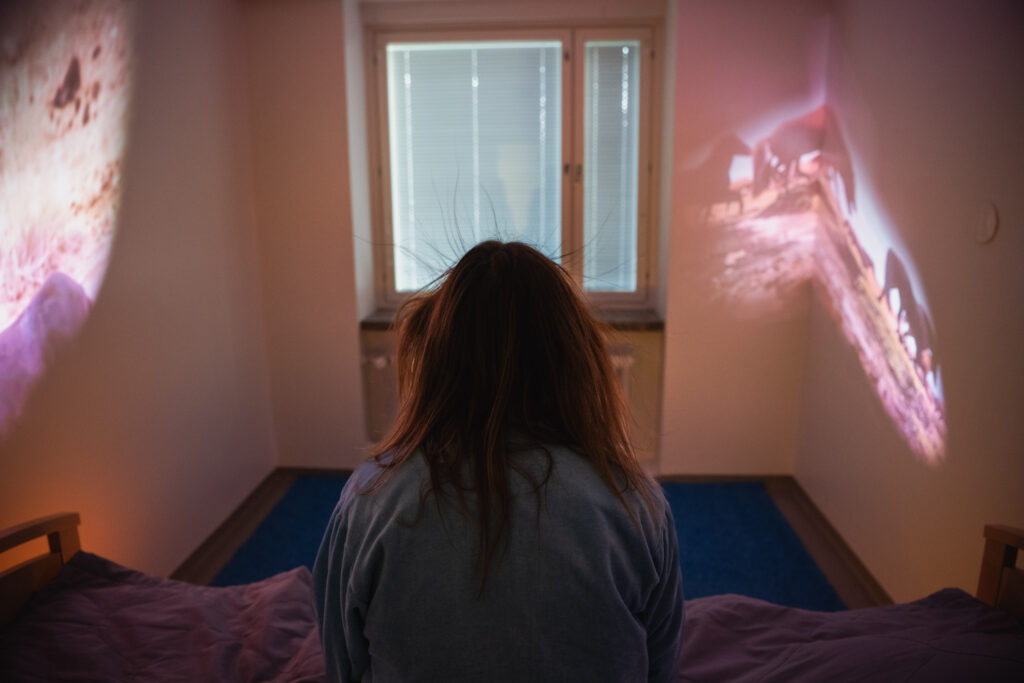 Hoivan ja paranemisen huone on immersiivinen esitys, joka uppouttaa katsojat hoivan ja parantumisen tiloihin ja teemoihin. Mitä hoiva tarkoittaa? Mitä parantuminen tai paremmin voiminen oikeastaan tarkoittaa?